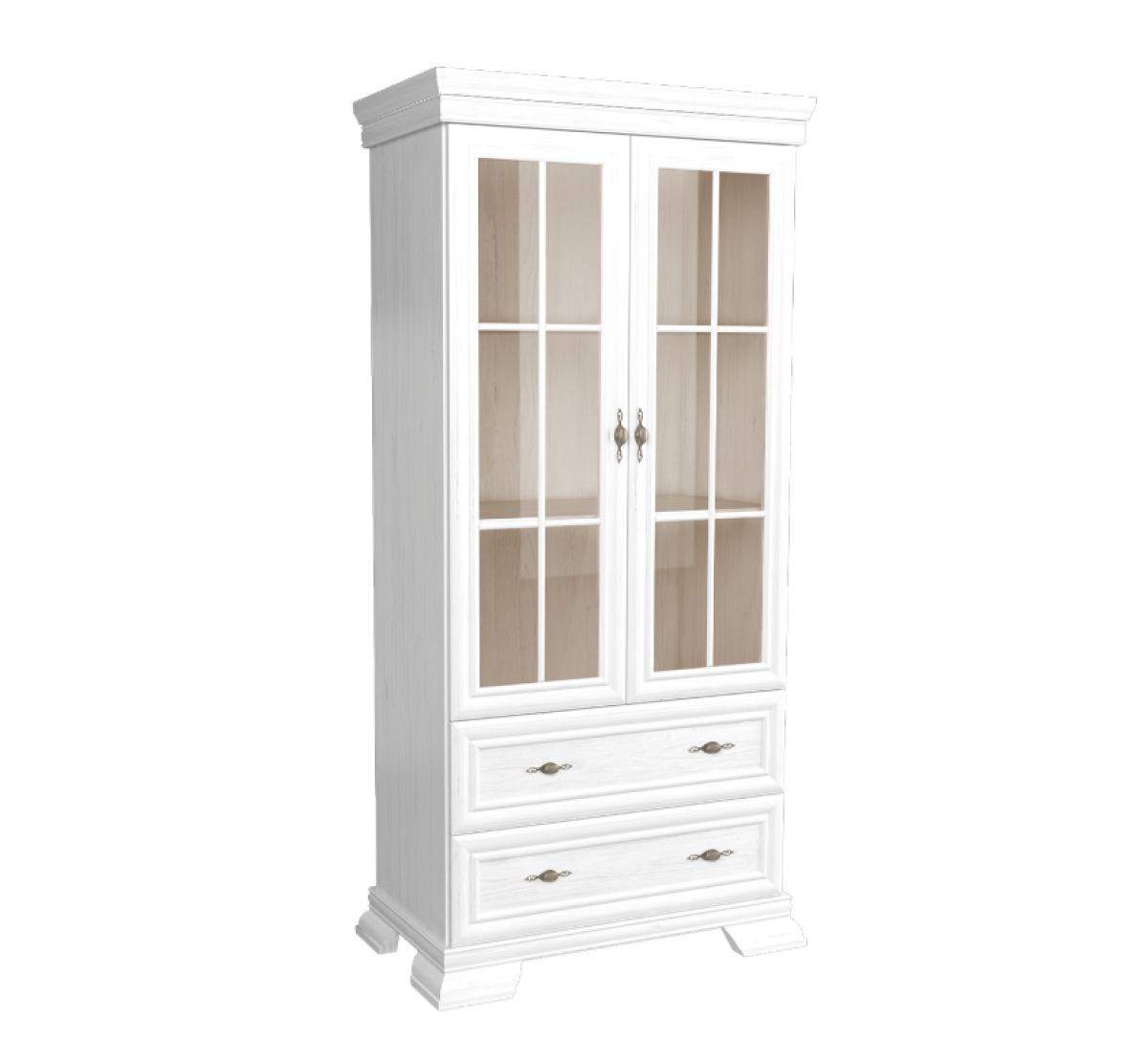 Indauja su dviem stalčiais ir keturiomis lentynomis už stiklinių durelių.