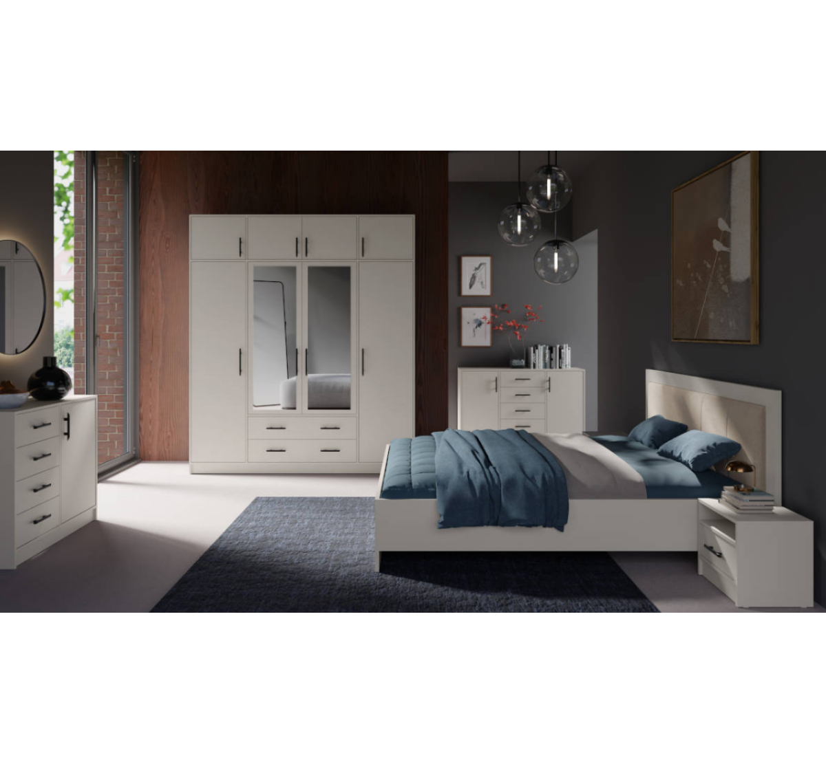Sanddėlyje turime pilkos spalvos, 160 dydžio lovą,