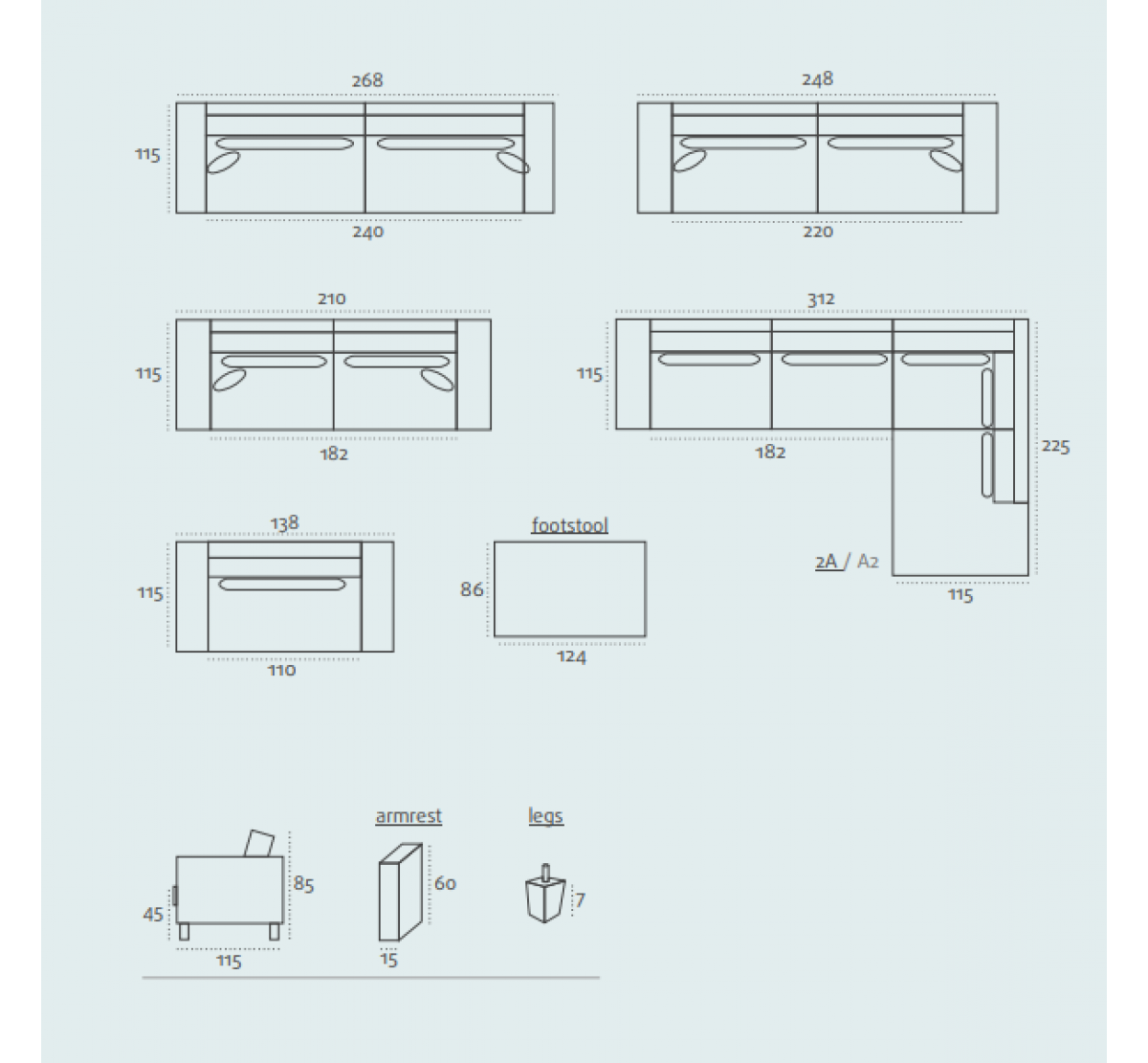 - Plotis: 248.00 cm. x Gylis: 115.00 cm. x Aukštis: 88.00 cm.